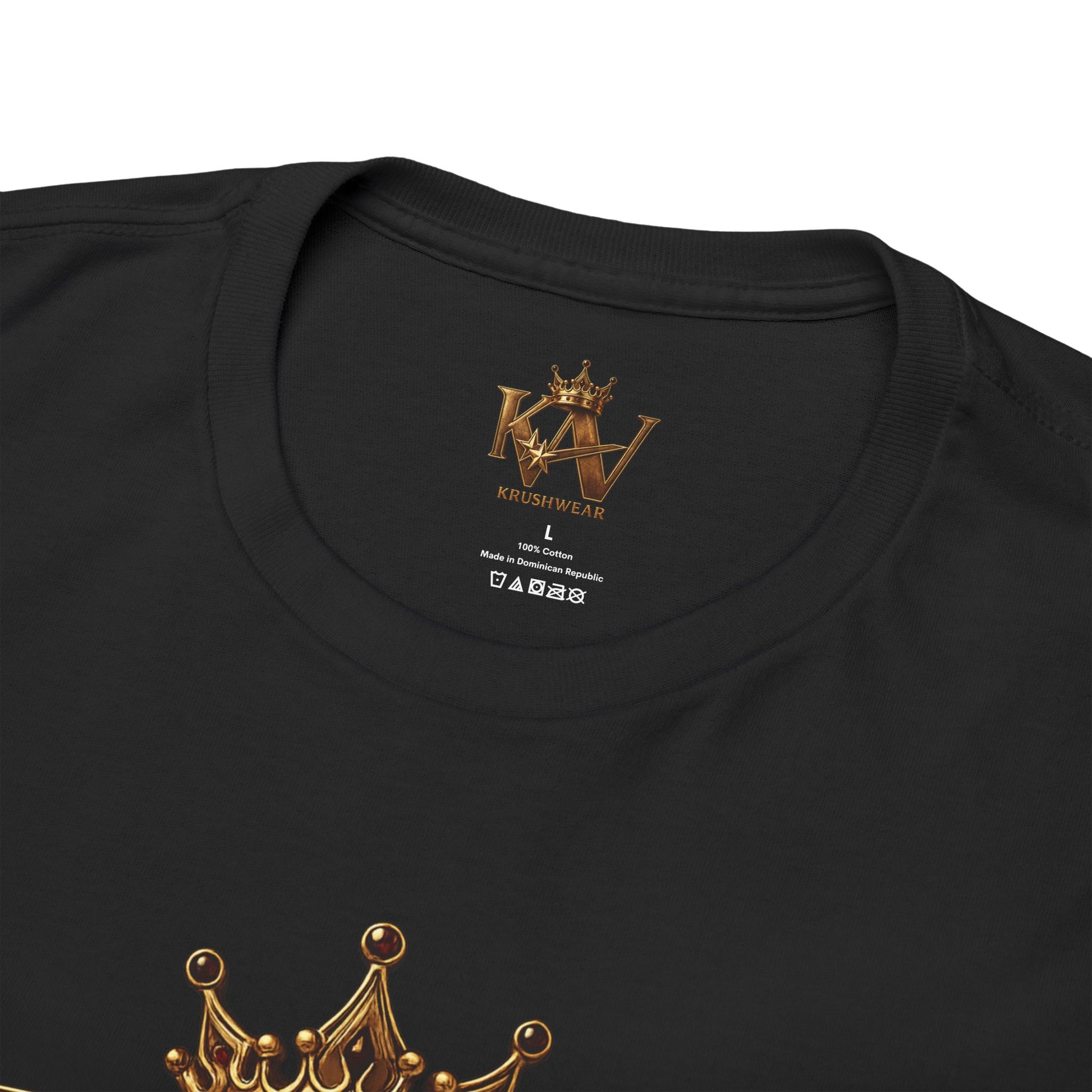 Lightweight, durable, and unapologetically bold — this classic cotton tee carries a luxe emblem that reads like a personal crest. The metallic-gold K W crest and crown sit centered on a clean black field, giving off quiet confidence without shouting. Wear it layered under a jacket for evenings out, or solo when you want your style to speak first. The fit is relaxed and timeless, the fabric feels smooth against skin, and the reinforced collar and shoulder tape keep the silhouette crisp after many wears. It’s the kind of shirt that slides effortlessly into streetwear rotations, studio nights, and laid-back gatherings where presence matters more than volume.